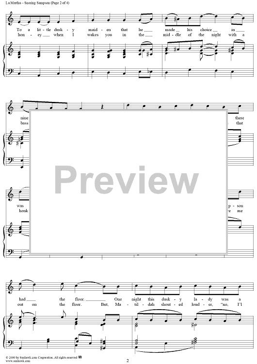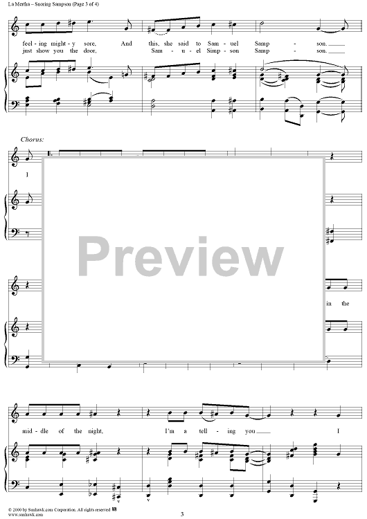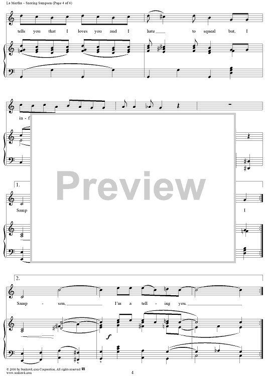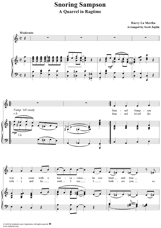 Digital Sheet Music for Snoring Sampson by Scott Joplin, Harry La Mertha scored for Piano/Vocal; id:250687