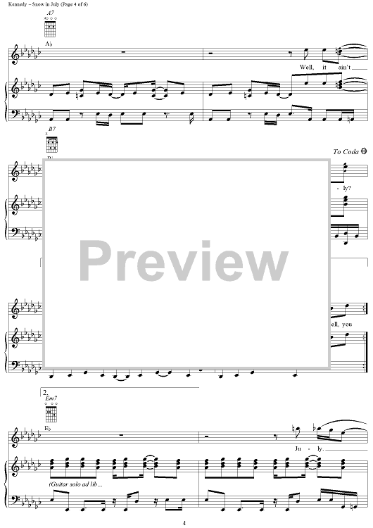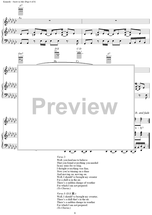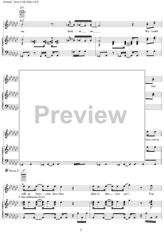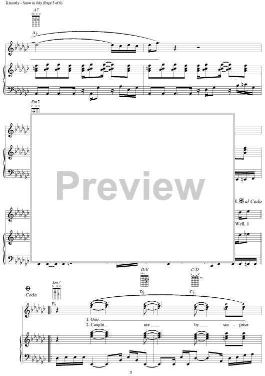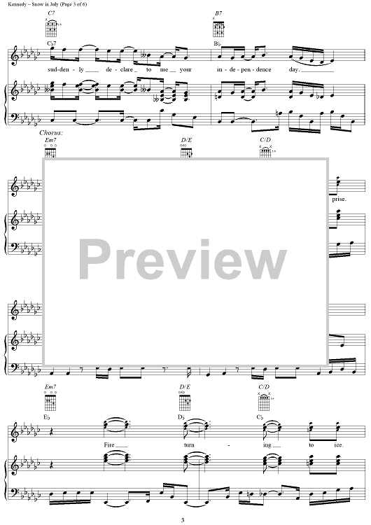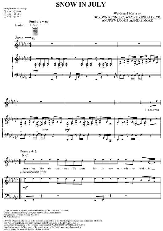 Digital Sheet Music for Snow in July by Wayne Kirkpatrick, Chris Gaines, Mike More, Andrew Logen, Gordon Kennedy scored for Piano/Vocal/Chords; id:236320