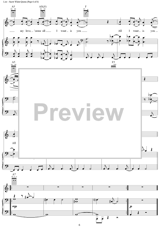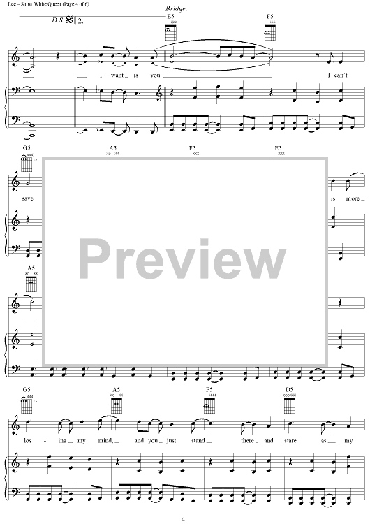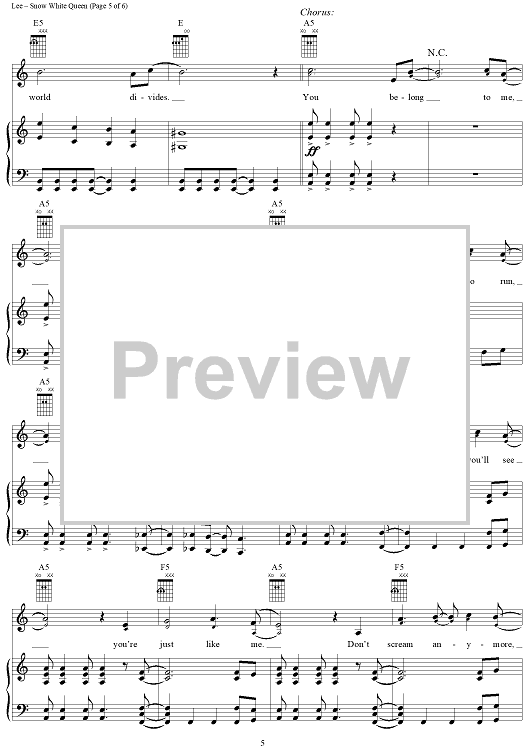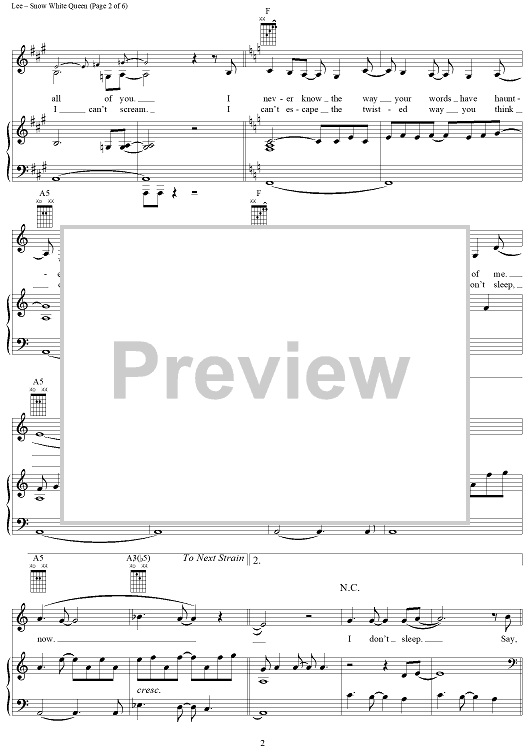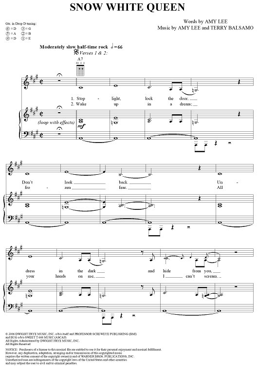 "Snow White Queen" Sheet Music by Evanescence
