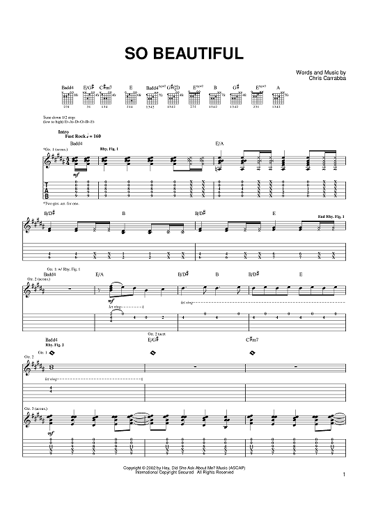 Digital Sheet Music for So Beautiful by Chris Carrabba, Dashboard Confessional scored for Guitar Tab; id:381842