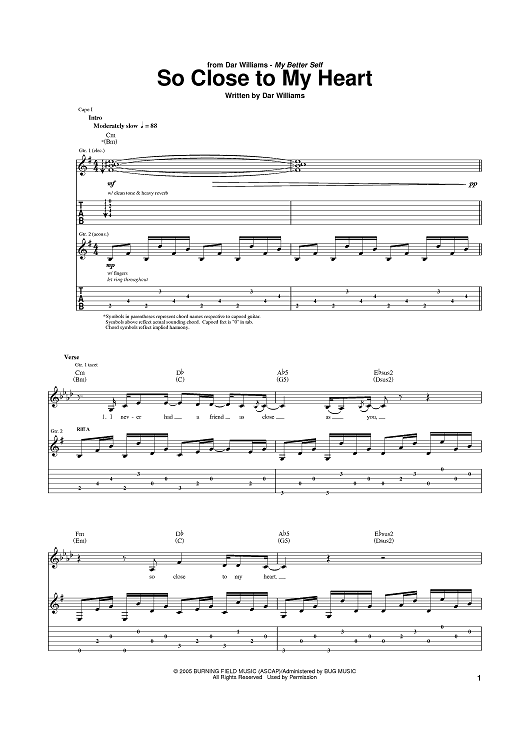 Digital Sheet Music for So Close To My Heart by Dar Williams scored for Guitar Tab; id:385637