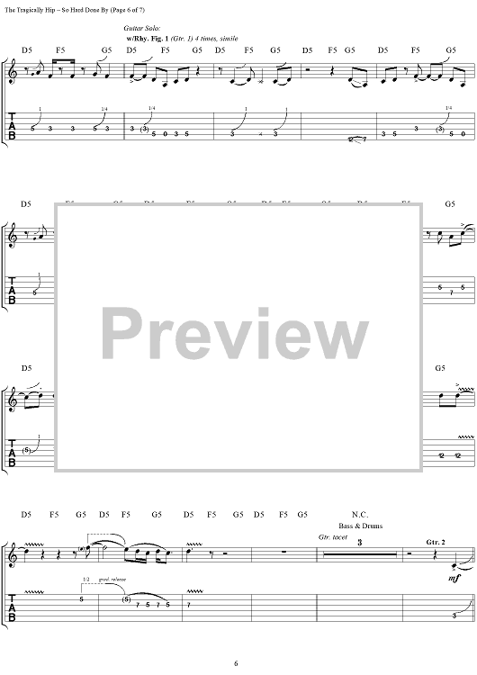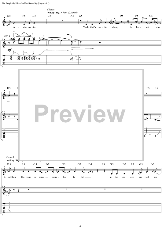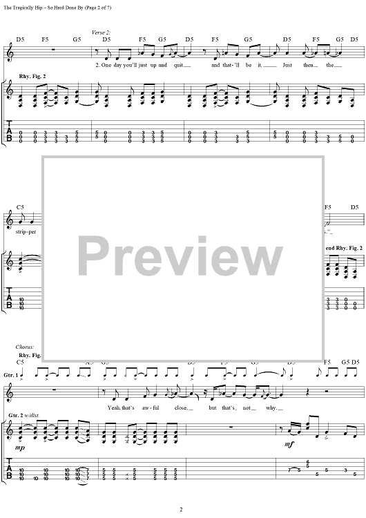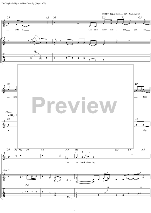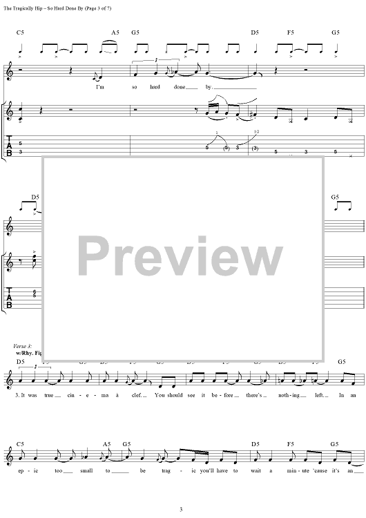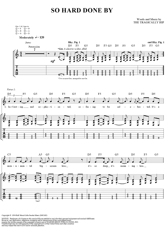 "So Hard Done By" Sheet Music by The Tragically Hip