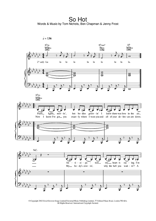 Digital Sheet Music for So Hot by Atomic Kitten scored for Piano/Vocal/Chords; id:377716