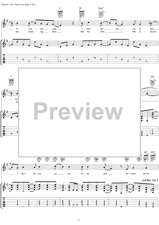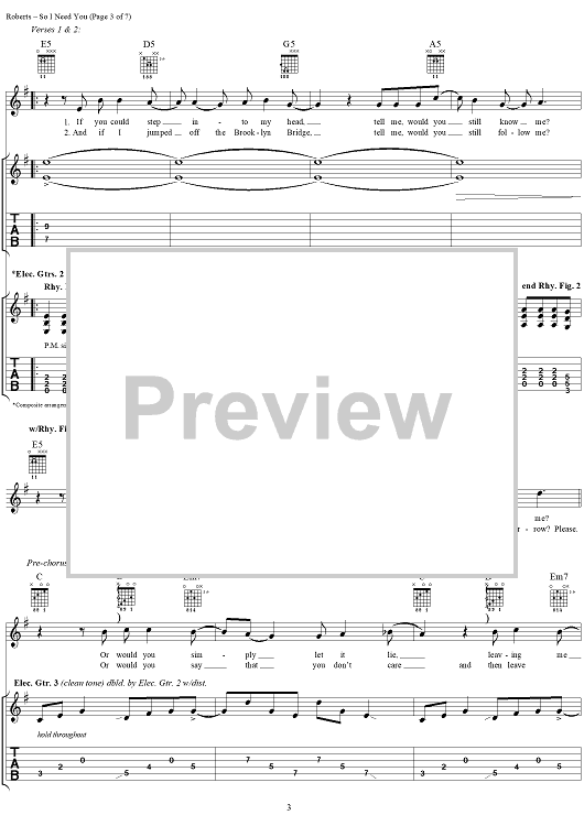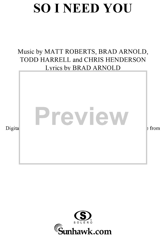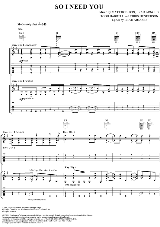 Digital Sheet Music for So I Need You by 3 Doors Down, Matt Roberts, Brad Arnold, Todd Harrell, Chris Henderson scored for Guitar Tab/Vocal; id:283932