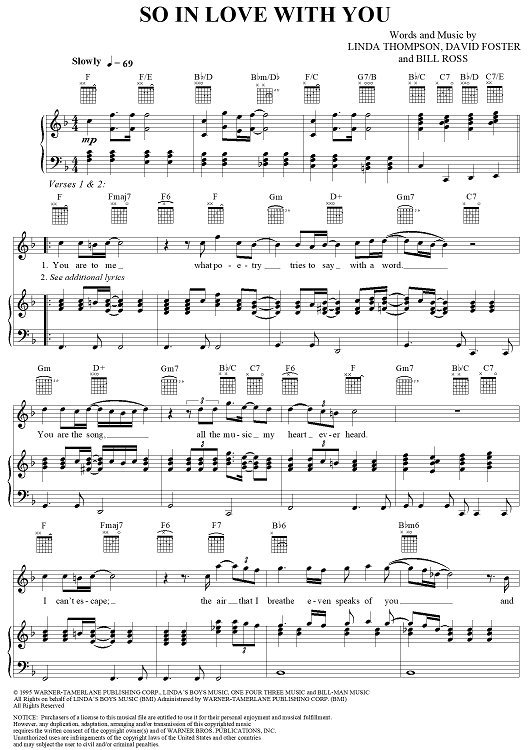 Digital Sheet Music for So in Love With You by Linda Thompson, Bill Ross, David Foster scored for Piano/Vocal/Chords; id:260206