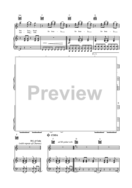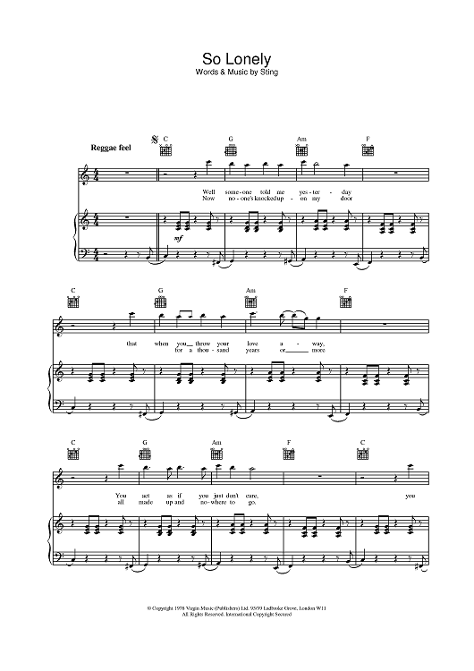 Digital Sheet Music for So Lonely by The Police scored for Piano/Vocal/Chords; id:376084
