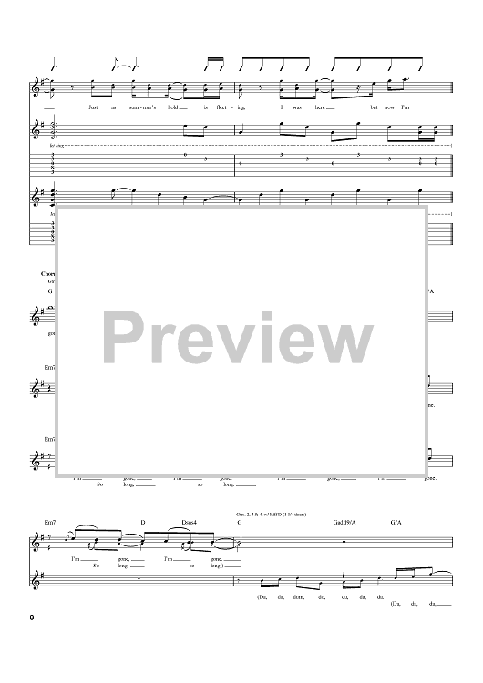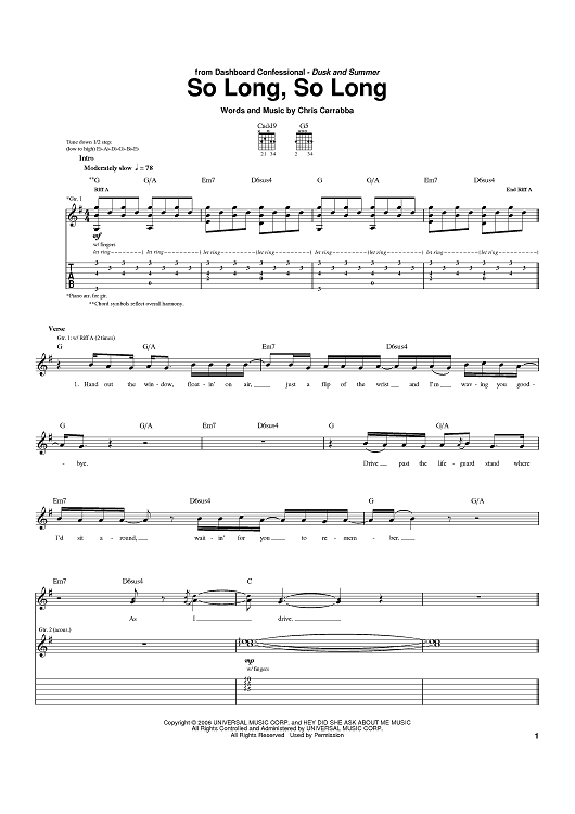 Digital Sheet Music for So Long, So Long by Chris Carrabba, Dashboard Confessional scored for Guitar Tab; id:397599