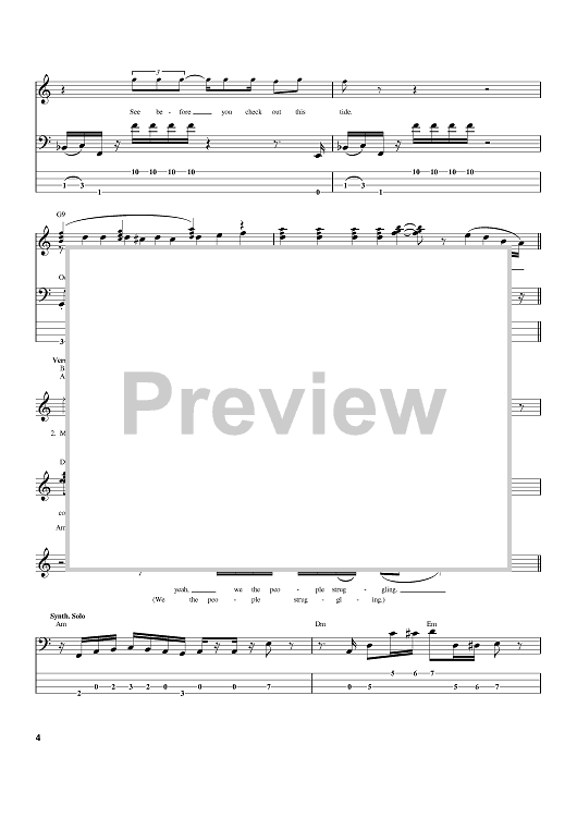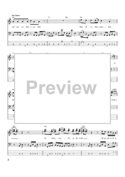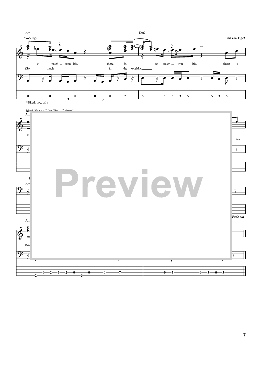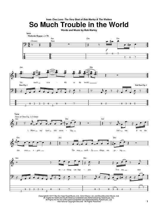 Digital Sheet Music for So Much Trouble In The World by Bob Marley scored for Bass Tab; id:371308