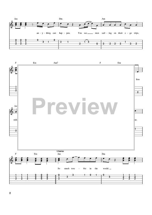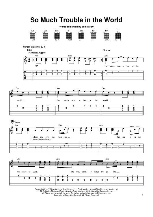 Digital Sheet Music for So Much Trouble In The World by Bob Marley scored for Easy Guitar Tab; id:371372