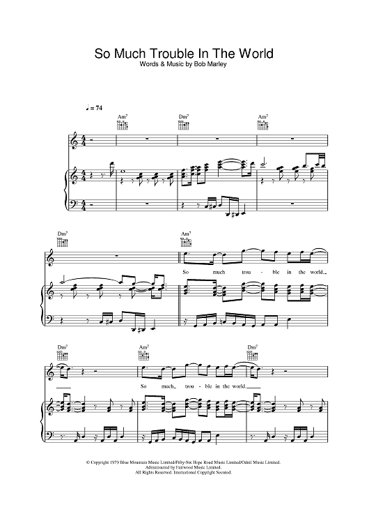 "So Much Trouble In The World" Sheet Music by Bob Marley