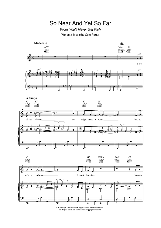 Digital Sheet Music for So Near And Yet So Far by Cole Porter scored for Piano/Vocal/Chords; id:397733