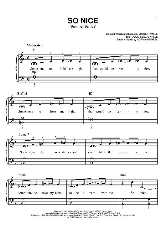 Digital Sheet Music for So Nice (Summer Samba) by Norman Gimbel, Marcos Valle, Paulo Sergio Valle, Astrud Gilberto, Bebel Gilberto, Walter Wanderley scored for Easy Piano; id:382269