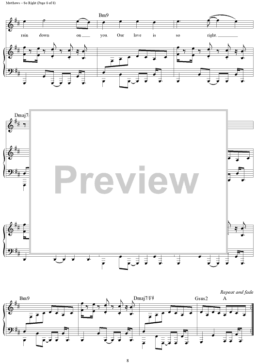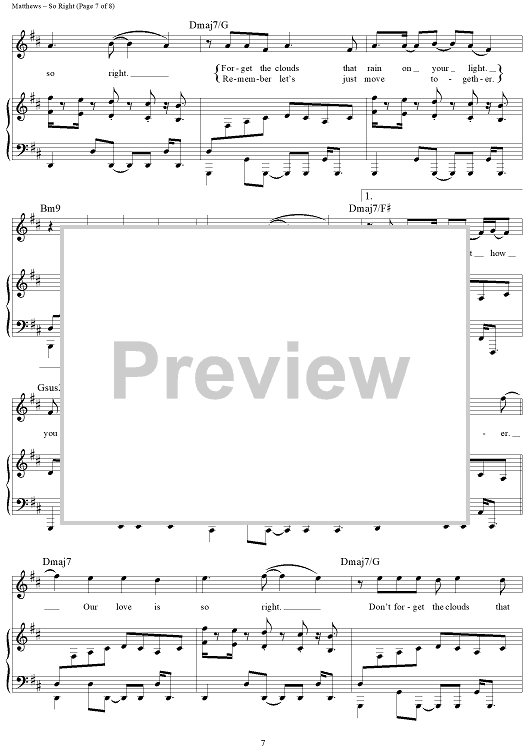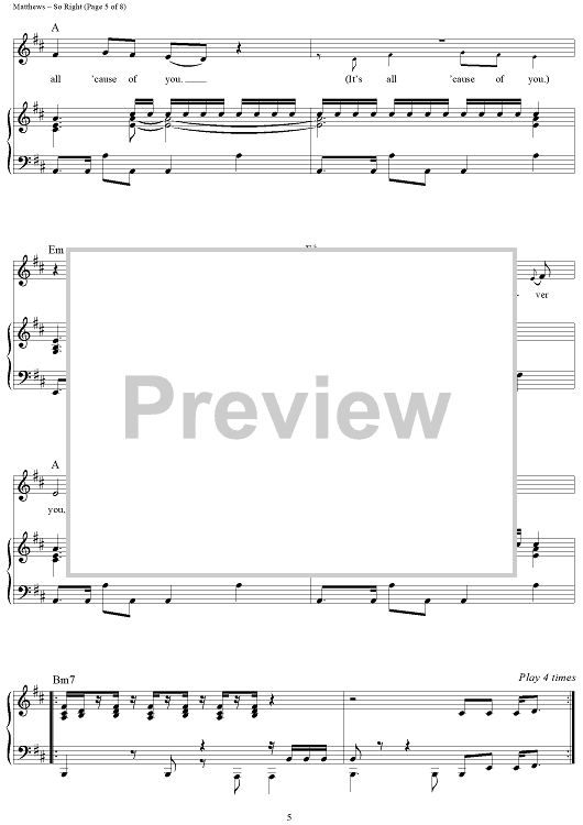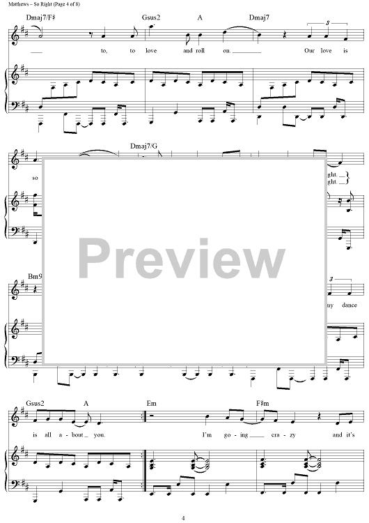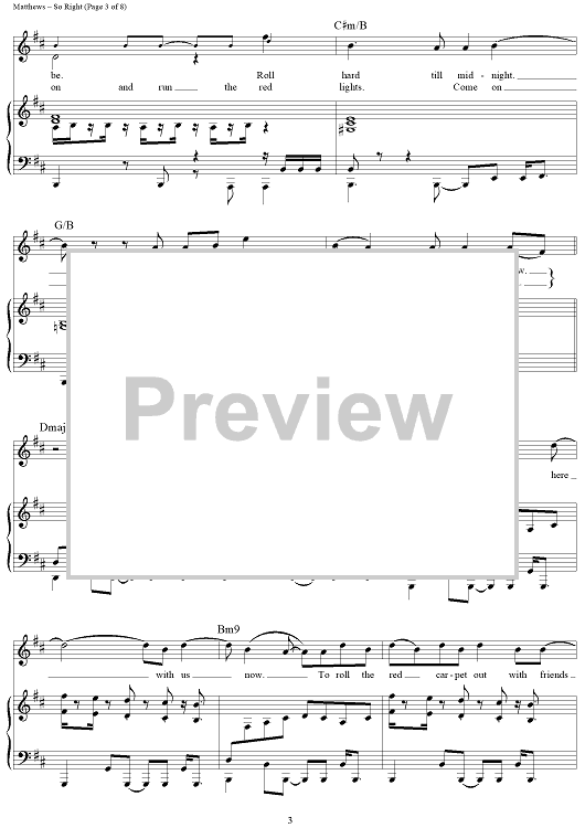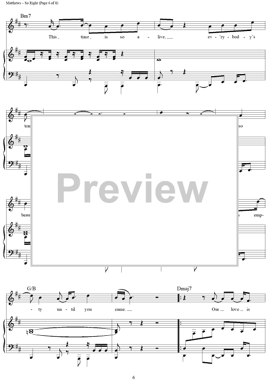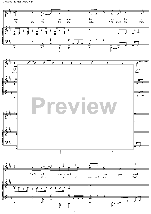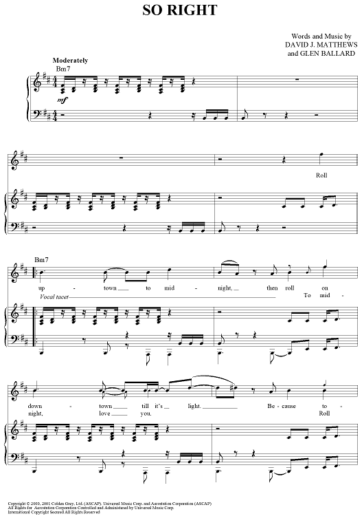 Digital Sheet Music for So Right by Glen Ballard, Dave Matthews Band, Dave Matthews scored for Piano/Vocal/Chords; id:452293