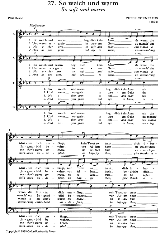 Digital Sheet Music for So weich und warm by Peter Cornelius scored for SATB Choir; id:336817