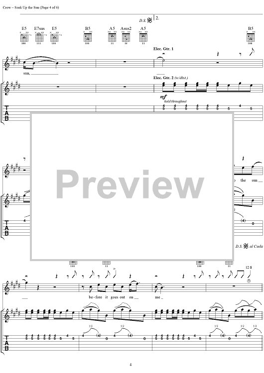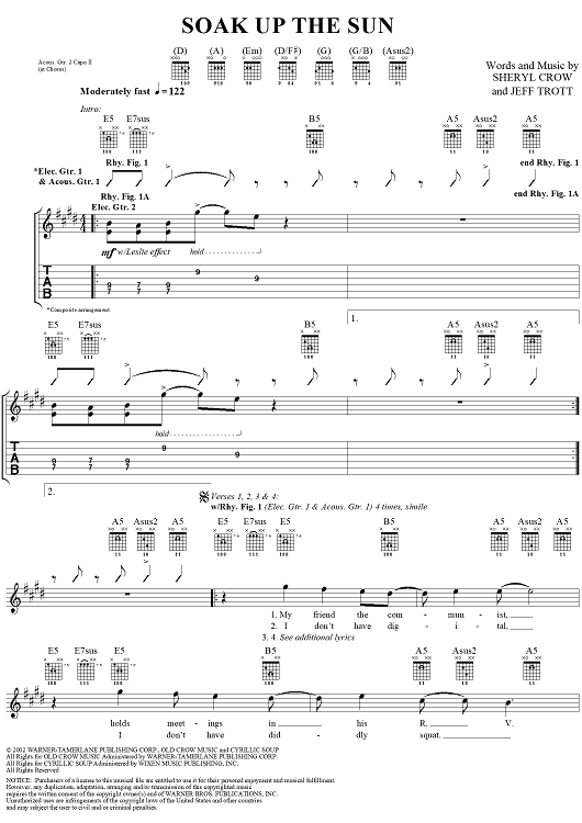 Digital Sheet Music for Soak Up the Sun by Sheryl Crow, Jeff Trott scored for Guitar Tab/Vocal; id:292050