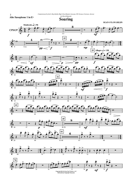 Digital Sheet Music for Soaring - Alto Saxophone 1 by Sean O'Loughlin scored for Concert Band; id:435509