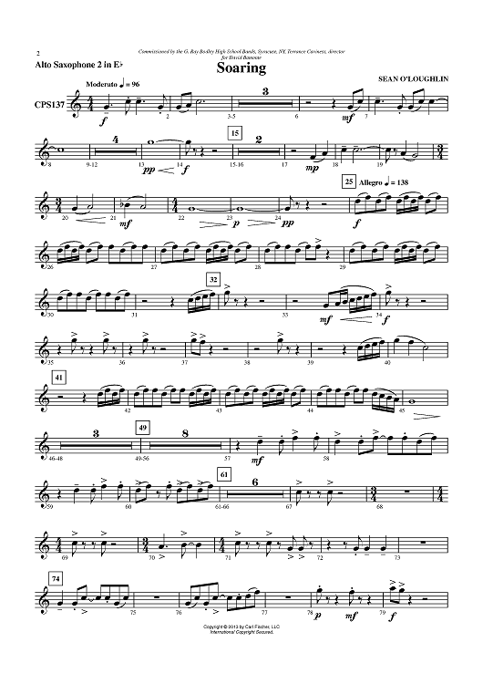 Digital Sheet Music for Soaring - Alto Saxophone 2 by Sean O'Loughlin scored for Concert Band; id:435510