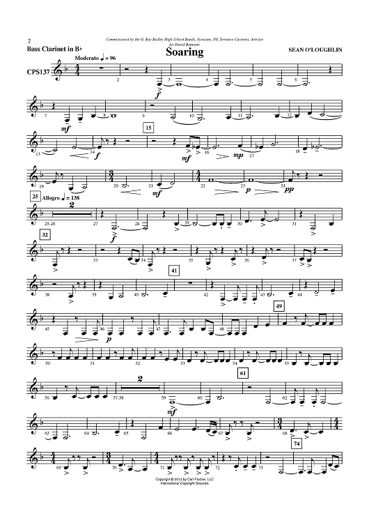 Digital Sheet Music for Soaring - Bass Clarinet in Bb by Sean O'Loughlin scored for Concert Band; id:435507