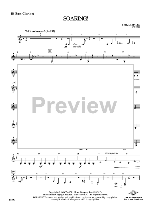 Digital Sheet Music for Soaring! - Bb Bass Clarinet by Erik Morales scored for Young Band; id:415464