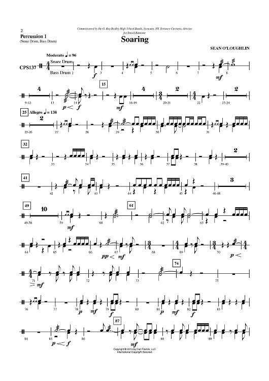 "Soaring - Percussion 1" Sheet Music by Sean O'Loughlin