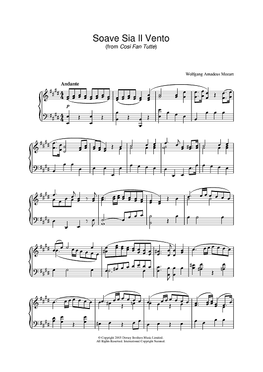 "Soave Sia Il Vento" Sheet Music by Wolfgang Amadeus Mozart