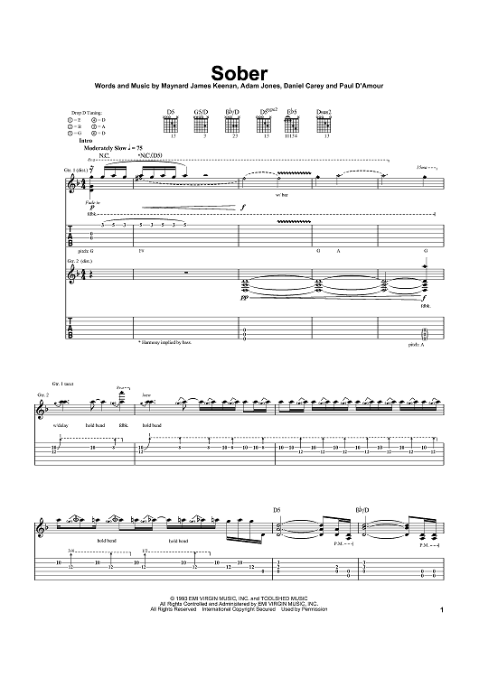 Digital Sheet Music for Sober by Maynard James Keenan, Daniel Carey, Adam Jones, Tool scored for Guitar Tab; id:367862