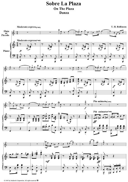 Digital Sheet Music for Sobre La Plaza - On the Plaza (Danza) by T. H. Rollinson scored for Flute/Piano; id:255940