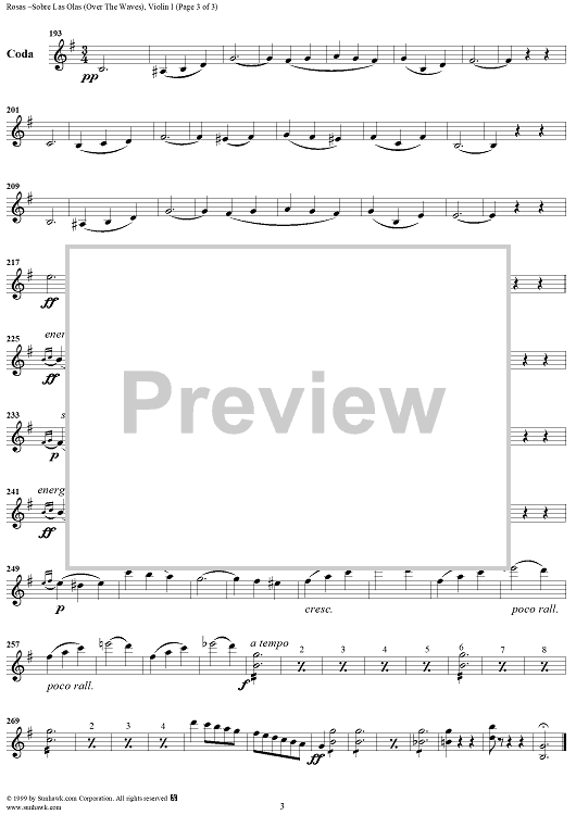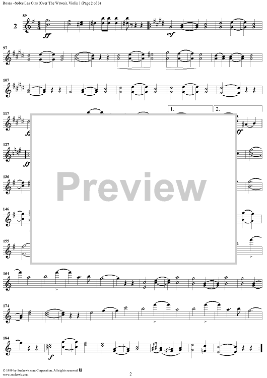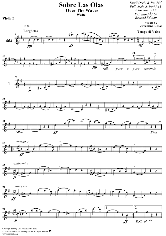 "Sobre Las Olas (Over The Waves) - Violin 1" Sheet Music by Juventino Rosas