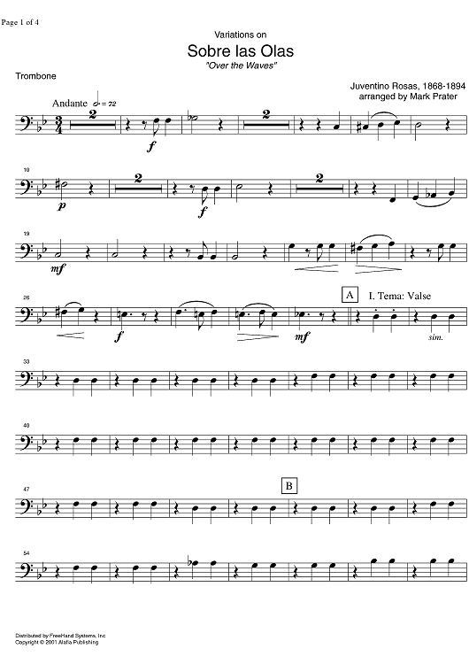 Digital Sheet Music for Sobre las Olas - Trombone by Juventino Rosas, Mark Prater scored for Brass Quintet; id:336596