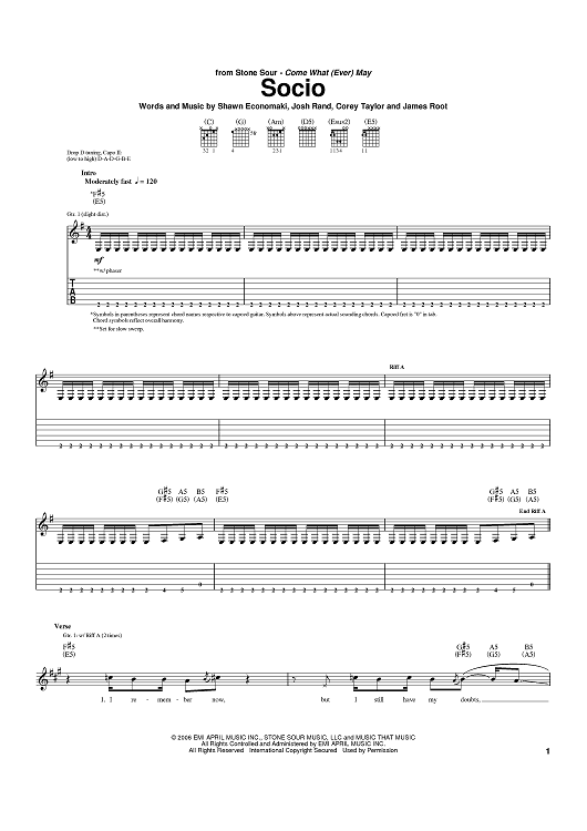 Digital Sheet Music for Socio by Shawn Economaki, Josh Rand, James Root, Stone Sour, Corey Taylor scored for Guitar Tab; id:395477