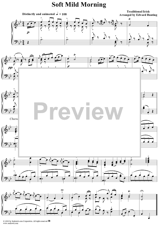 Digital Sheet Music for Soft Mild Morning by , Edward Bunting, Traditional scored for Piano Solo; id:240563