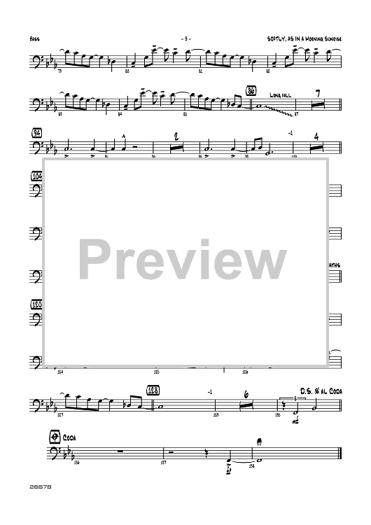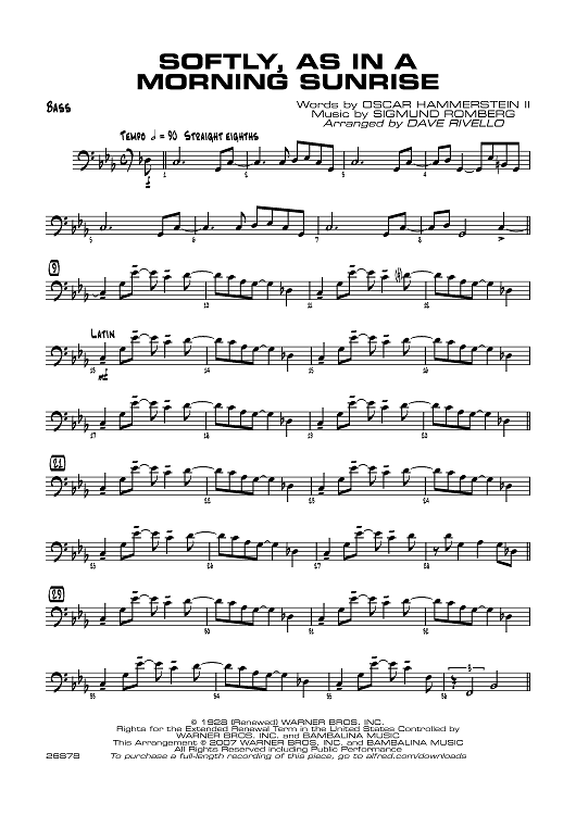 Digital Sheet Music for Softly, As in a Morning Sunrise - Bass by Sigmund Romberg, Oscar Hammerstein II, Dave Rivello scored for Jazz Ensemble; id:360380