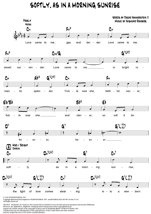Digital Sheet Music for Softly, as in a Morning Sunrise by Sigmund Romberg, Oscar Hammerstein II scored for Lead Sheet; id:315156