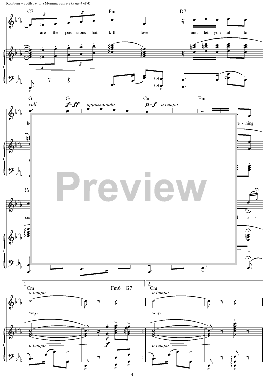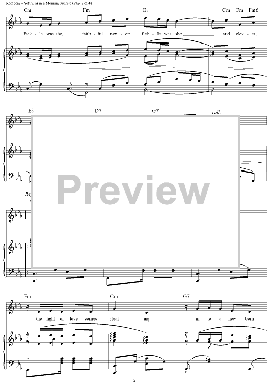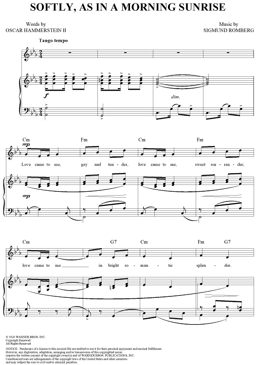 Digital Sheet Music for Softly, as in a Morning Sunrise by Sigmund Romberg, Oscar Hammerstein II scored for Piano/Vocal/Chords; id:359416
