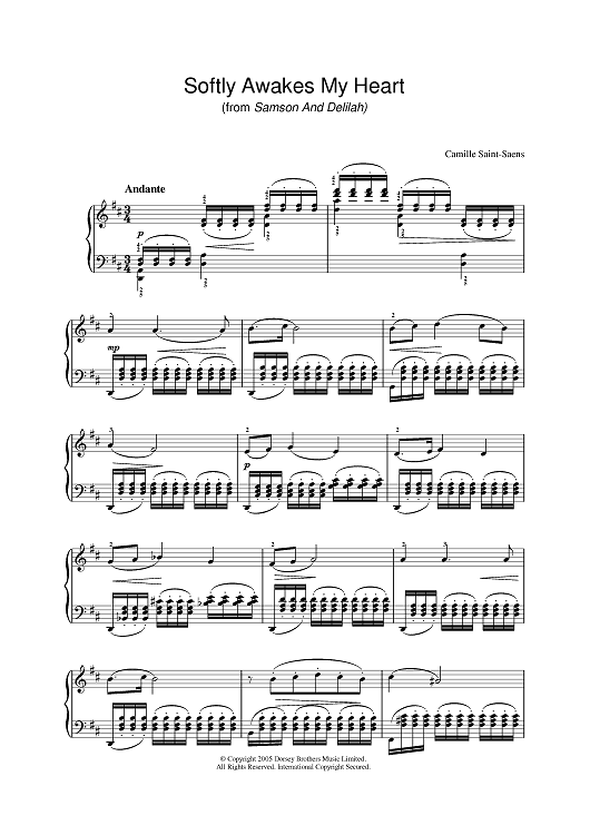 Digital Sheet Music for Softly Awakes My Heart (from Samson And Delilah) by Camille Saint-Saëns scored for Piano; id:388095