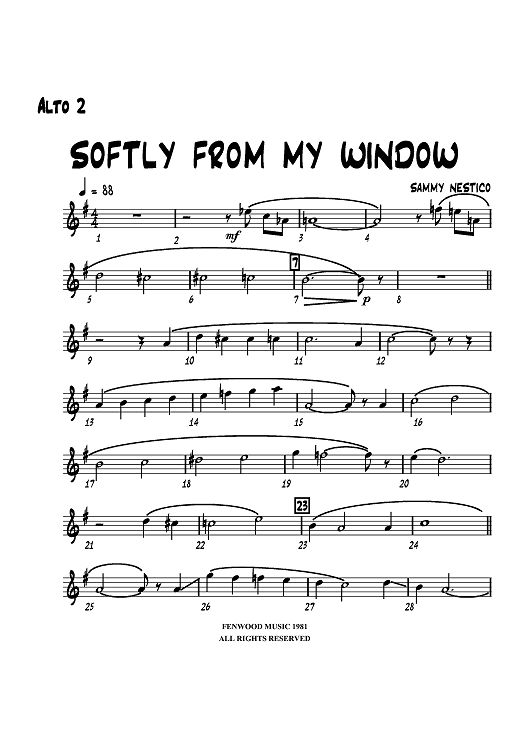 "Softly from My Window - Alto Sax 2" Sheet Music by Sammy Nestico