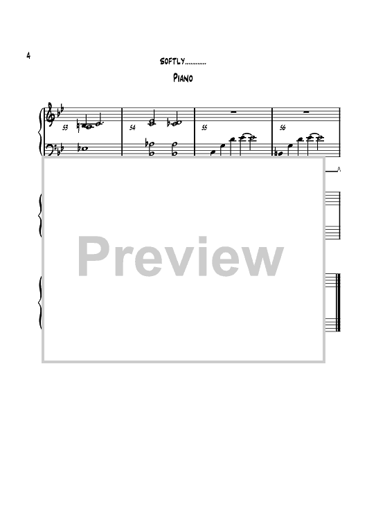 Style: Ballad (Alto Sax Feature) Range: Eb4 F5 Softly From My Window is a real showcase for the Alto Saxophone. Performance can be “loose” (not exact) but very “warm.” Keep brass volume to a minimum when used as background. Pyramids in the introduction and again at bar 37 should be more pronounced and attacked more than the rest of the arrangement. Concentrate on a beautiful over-all sound.