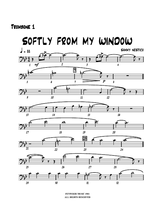 "Softly from My Window - Trombone 1" Sheet Music by Sammy Nestico