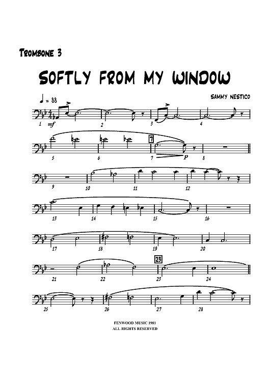"Softly from My Window - Trombone 3" Sheet Music by Sammy Nestico