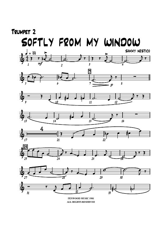 "Softly from My Window - Trumpet 2" Sheet Music by Sammy Nestico