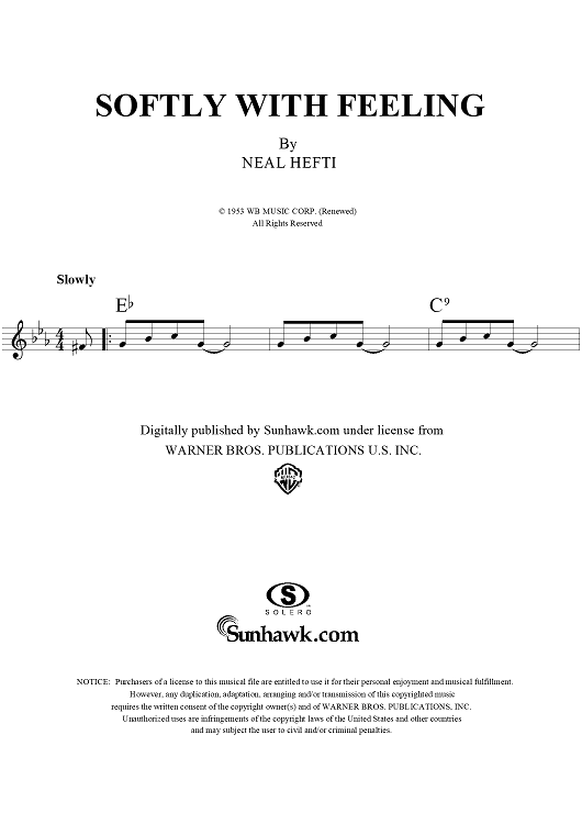 Digital Sheet Music for Softly with Feeling by Count Basie, Neal Hefti scored for Lead Sheet; id:124059