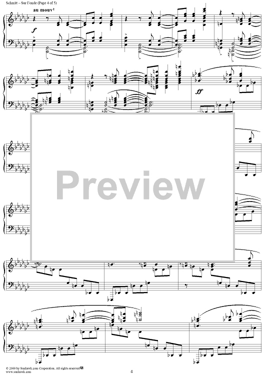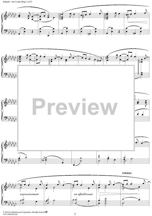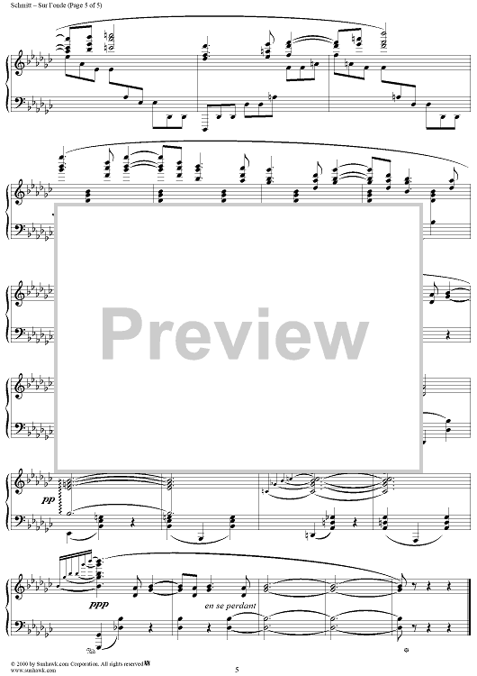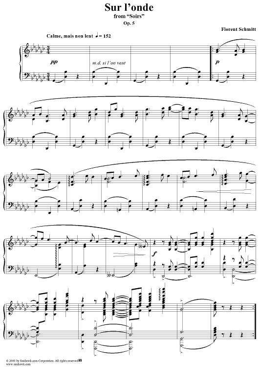 Digital Sheet Music for Soirs: Sur l'onde op. 5, no. 9 by , Florent Schmitt scored for Piano Solo; id:235443