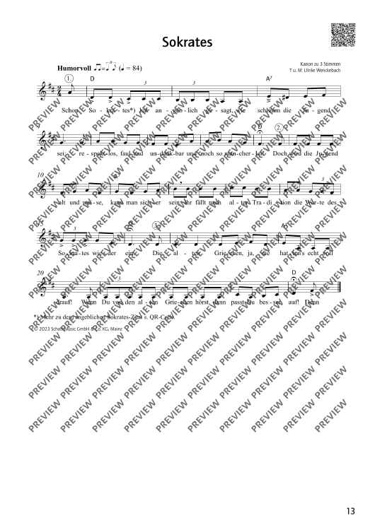 Digital Sheet Music for Sokrates by Ulrike Wenckebach scored for School Choir, Mixed Choir (kanon); id:500565