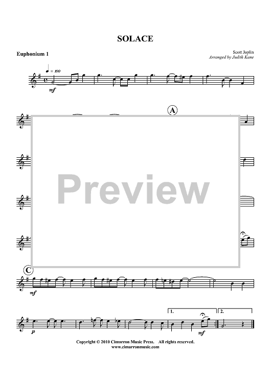 "Solace - Euphonium 1" Sheet Music by Scott Joplin