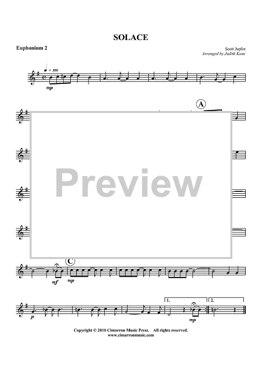 "Solace - Euphonium 2" Sheet Music by Scott Joplin