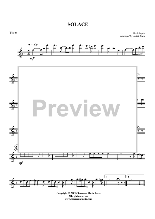 Digital Sheet Music for Solace - Flute by Scott Joplin, Judith Kane scored for Woodwind Quintet; id:427109
