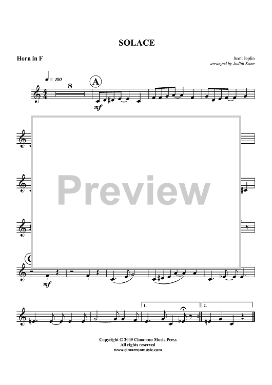 "Solace - Horn in F" Sheet Music by Scott Joplin