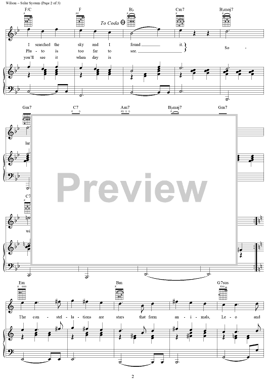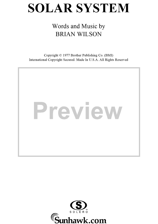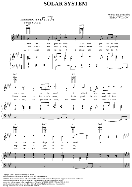 Digital Sheet Music for Solar System by Brian Wilson, The Beach Boys scored for Piano/Vocal/Chords; id:263551
