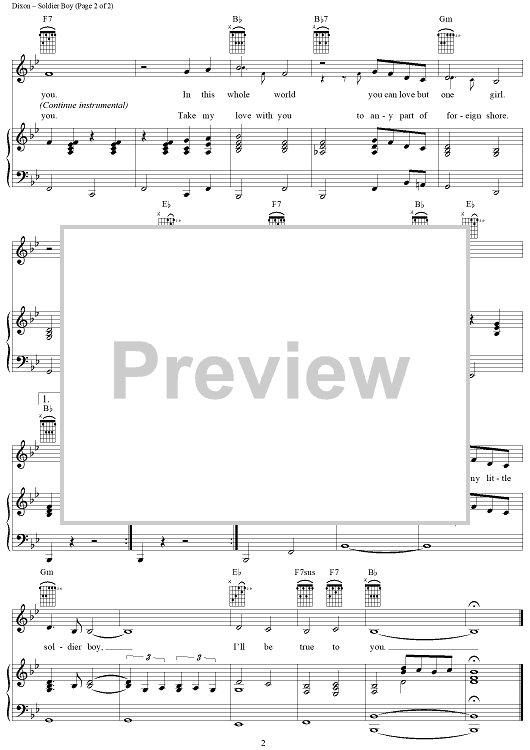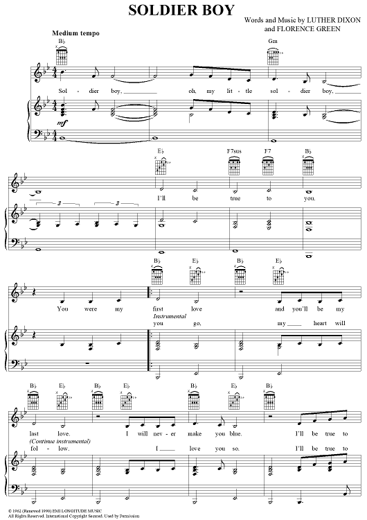 Digital Sheet Music for Soldier Boy by The Shirelles, Luther Dixon, Florence Green scored for Piano/Vocal/Chords; id:367766