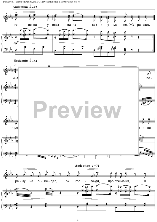"Soldier’s Requiem. 14. The Crane Is Flying in the Sky" Sheet Music by Vladimir Dashkevich